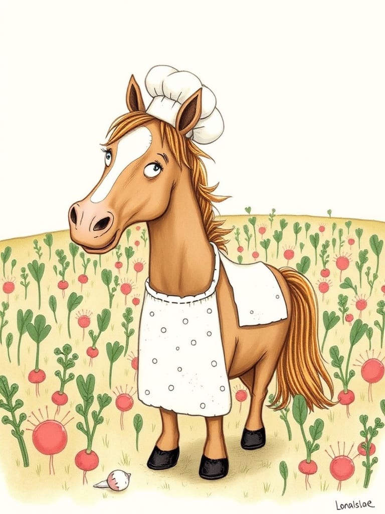 It has nothing to do with horses (thank goodness). The German name Meerrettich (“sea radish”) was mistranslated into English. Somewhere, someone heard “meer” as “mare,” and voilà — horseradish. Horses, for the record, want no part in this culinary mess.
