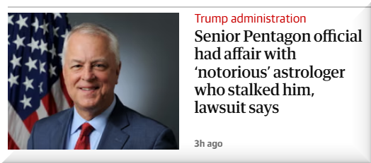 A senior Pentagon official in Donald Trump’s administration had a months-long extramarital affair with a woman claiming to be “the internet’s most notorious astrologer” – and claims in a defamation lawsuit filed in Florida that she cyberstalked him and his wife after they split up.