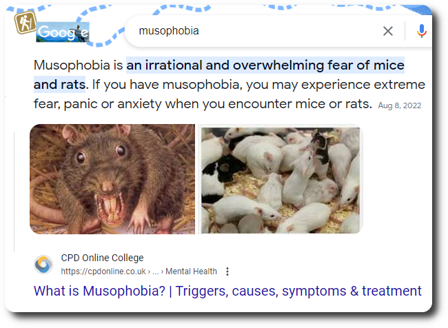 [But the word Musophobia is most often associated with a fear of mice. We weren’t afraid of mice prior to seeing this picture, but we are now.]