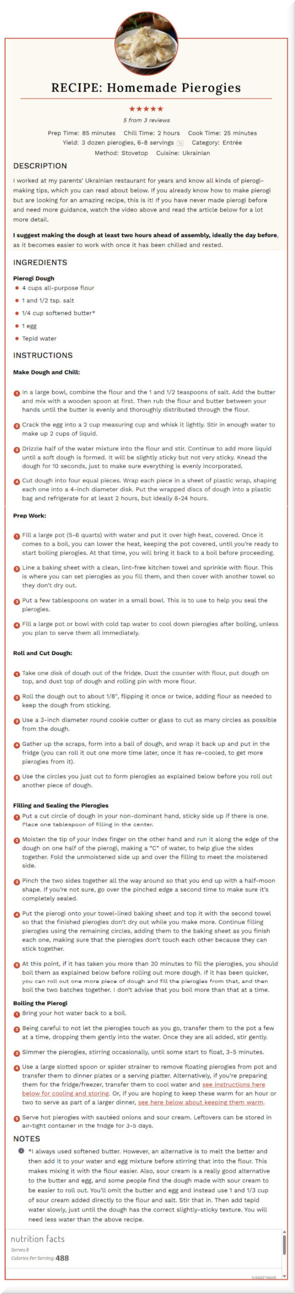 We’ve decided to go with Christine Pittman‘s recipe for Varenke. As a kid, she worked in her parents’ Ukrainian pierogi restaurants. She knows all the techniques for making great pierogies, and she also offers a lot of tips for alternate preparations.