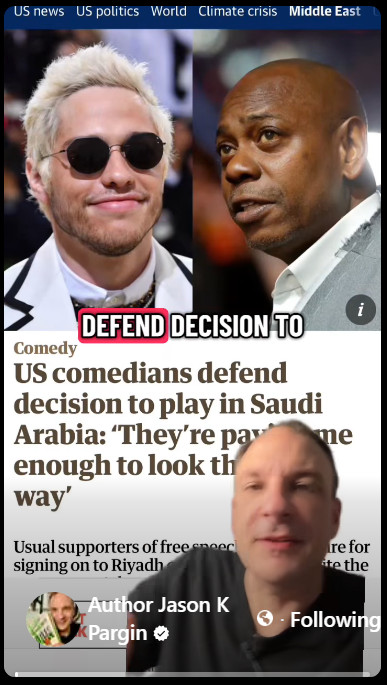 This includes free speech warriors like Dave Chappelle performing on behalf of a regime who specifically does not believe in free speech.