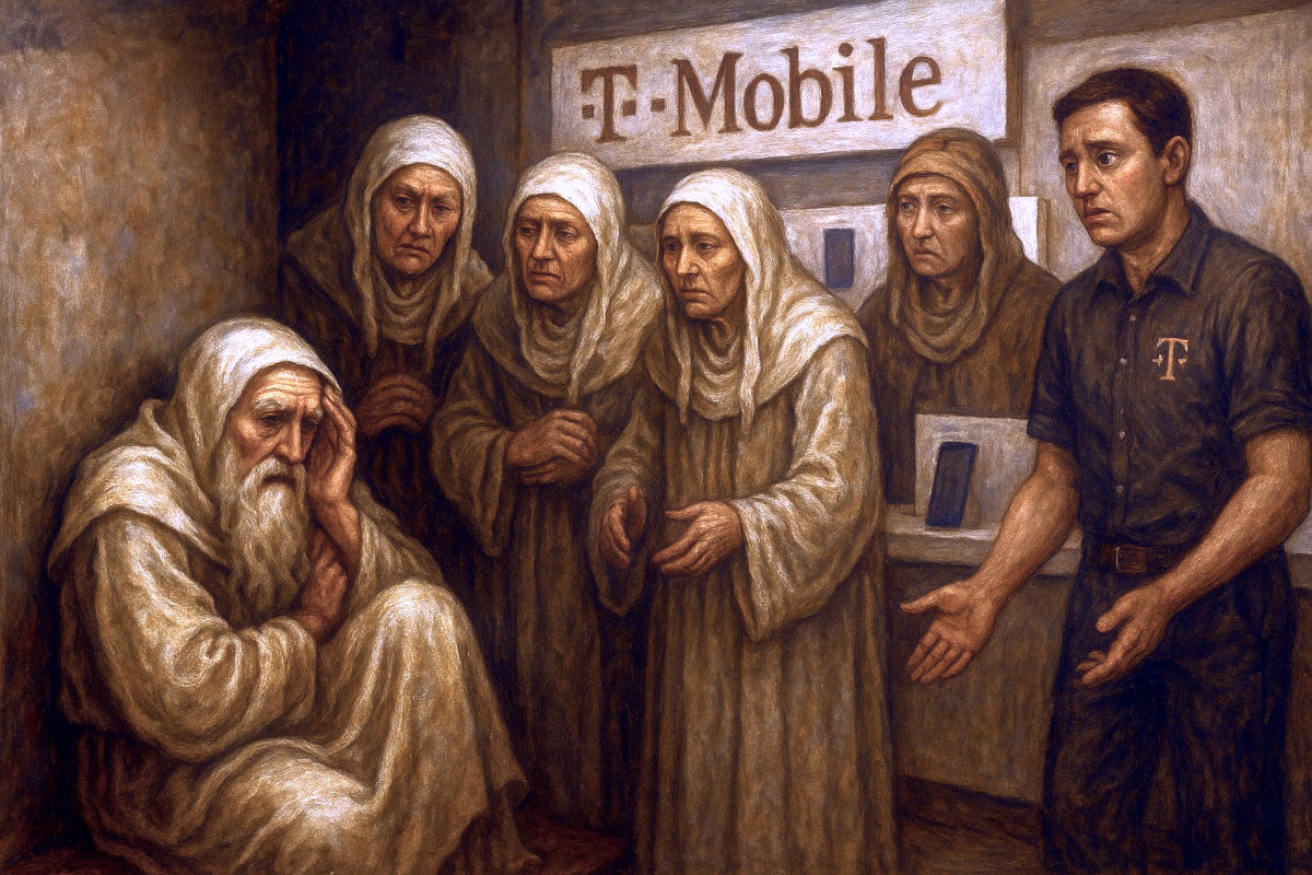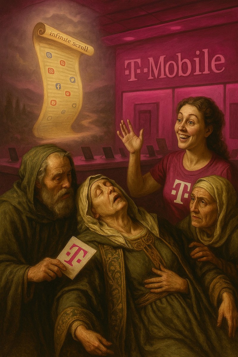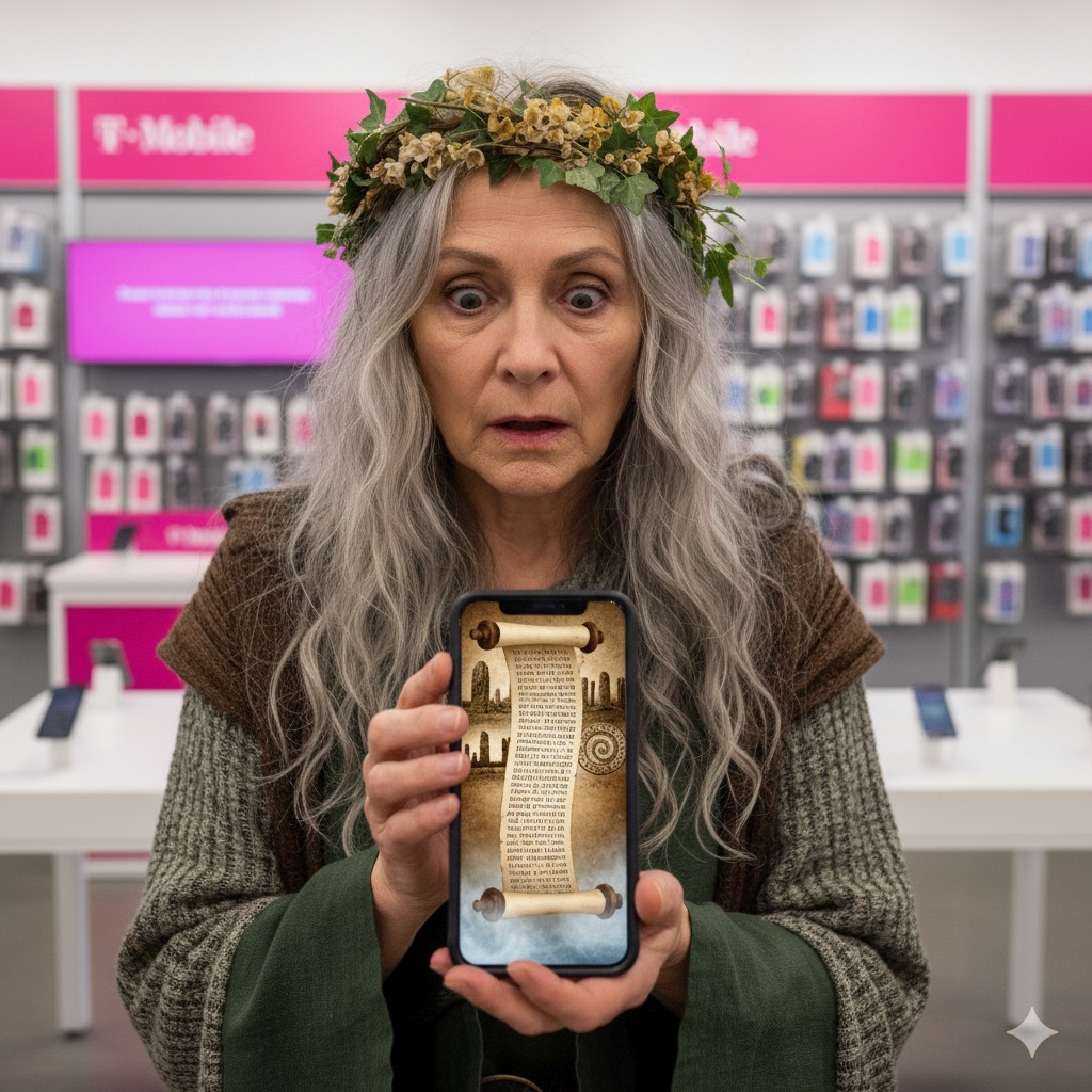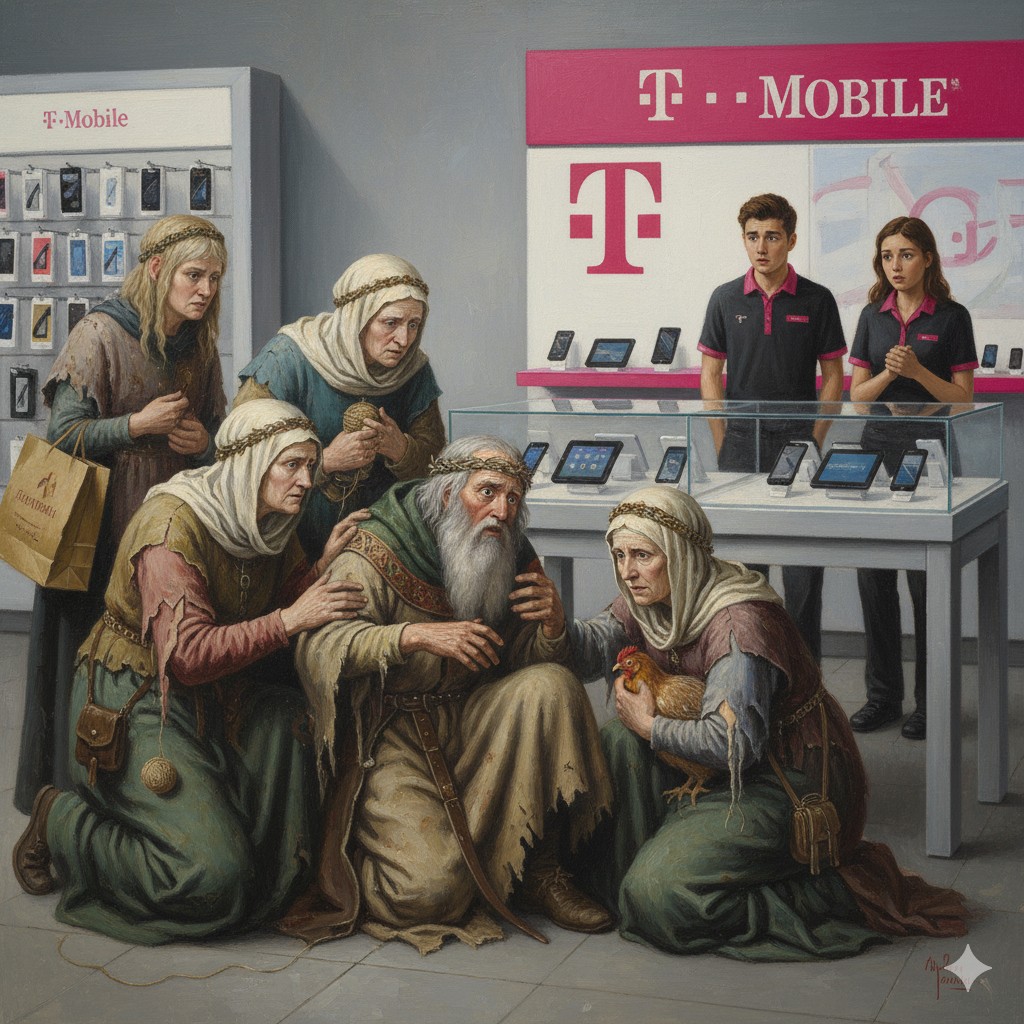 Elder Agathina was overcome by the concept of the “infinite scroll”. At one point she had to be revived by a nurturing T-Mobile staff member.