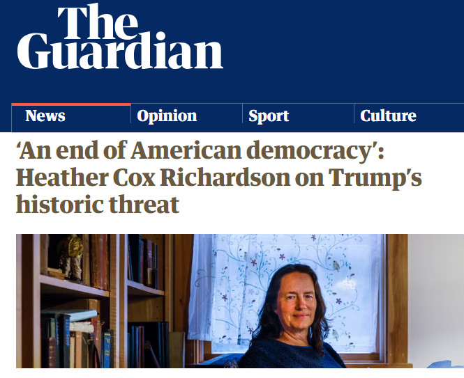 Today’s addition of The Guardian interviews Heather Cox Richardson. HCR is held in the highest regard by WLBOTT, and has been given the honorary title WYNHO.