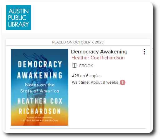 HCR’s new book is Democracy Awakening: Notes on the State of America.