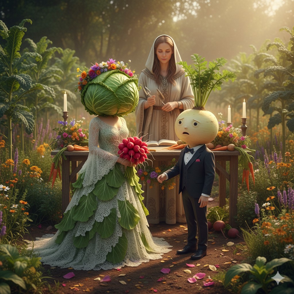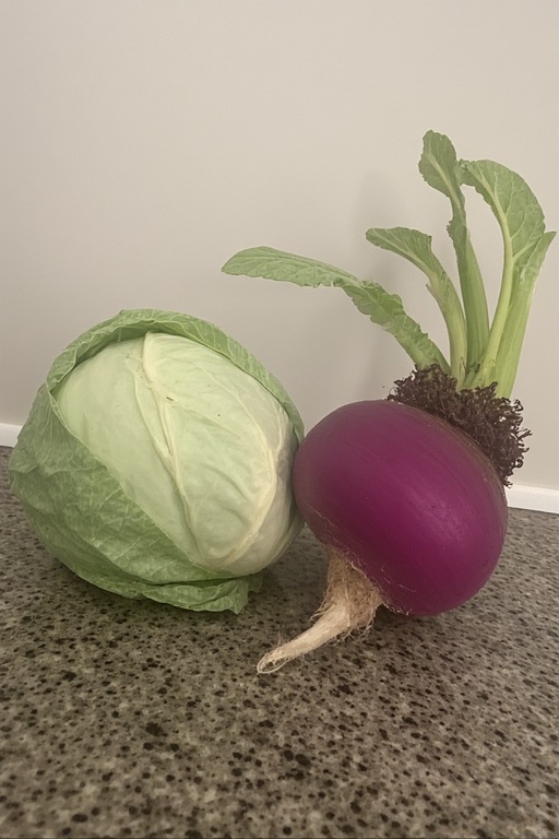 The WLBOTT Ministry of Virtue and Vice was concerned about the hybrid relationship between the cabbage and the turnip, worried that it was forbidden in Leviticus (a cabbage shall not lie down with a turnip, etc). However, after consulting our on-call biblical scholar, the ministry allowed us to proceed, but only in the most tasteful and sensitive manner. And they insisted that the cabbage and turnip be in a committed relationship.