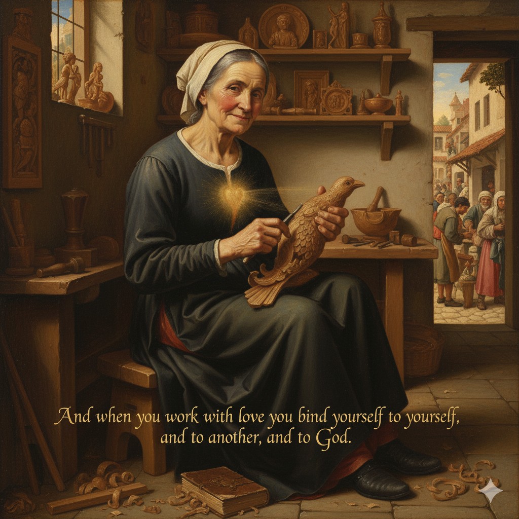 And when you work with love you bind yourself to yourself, and to one another, and to God.