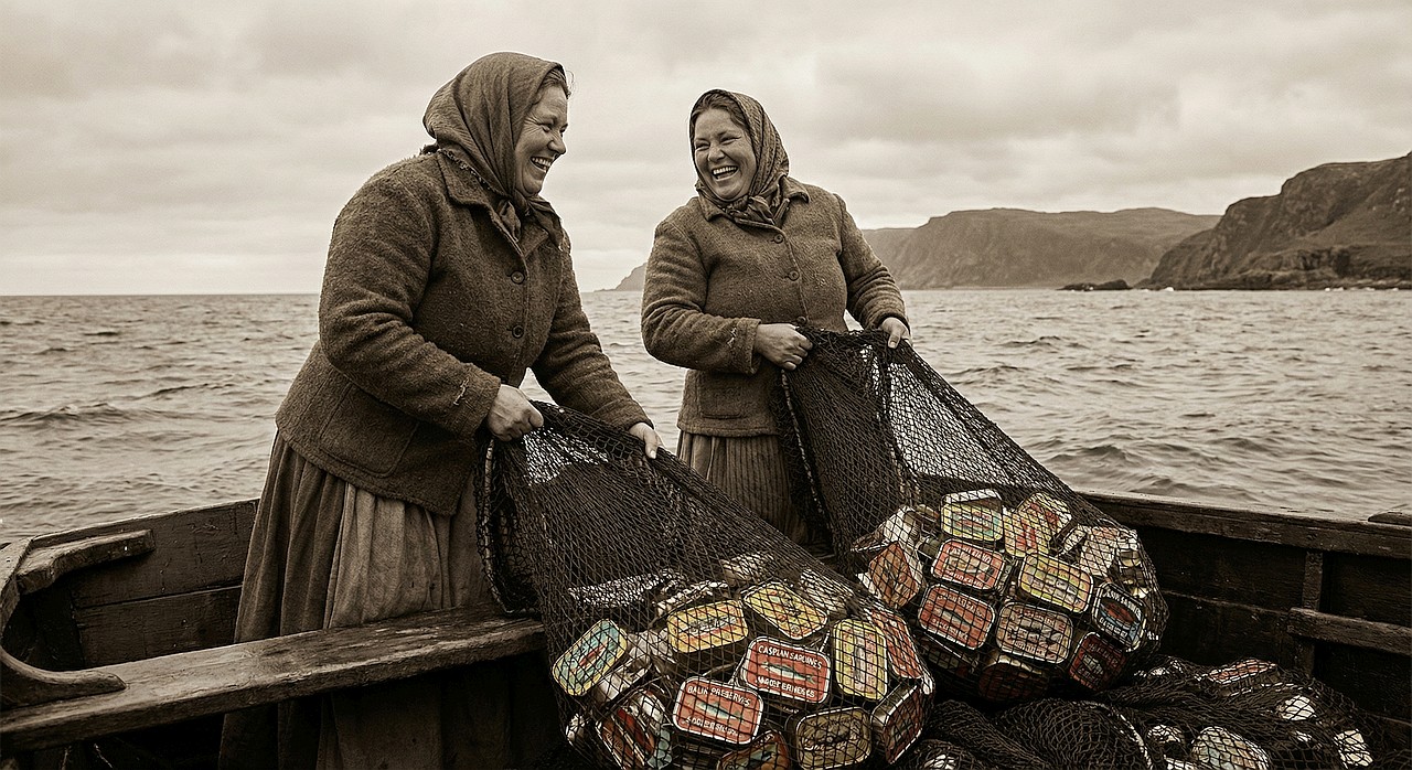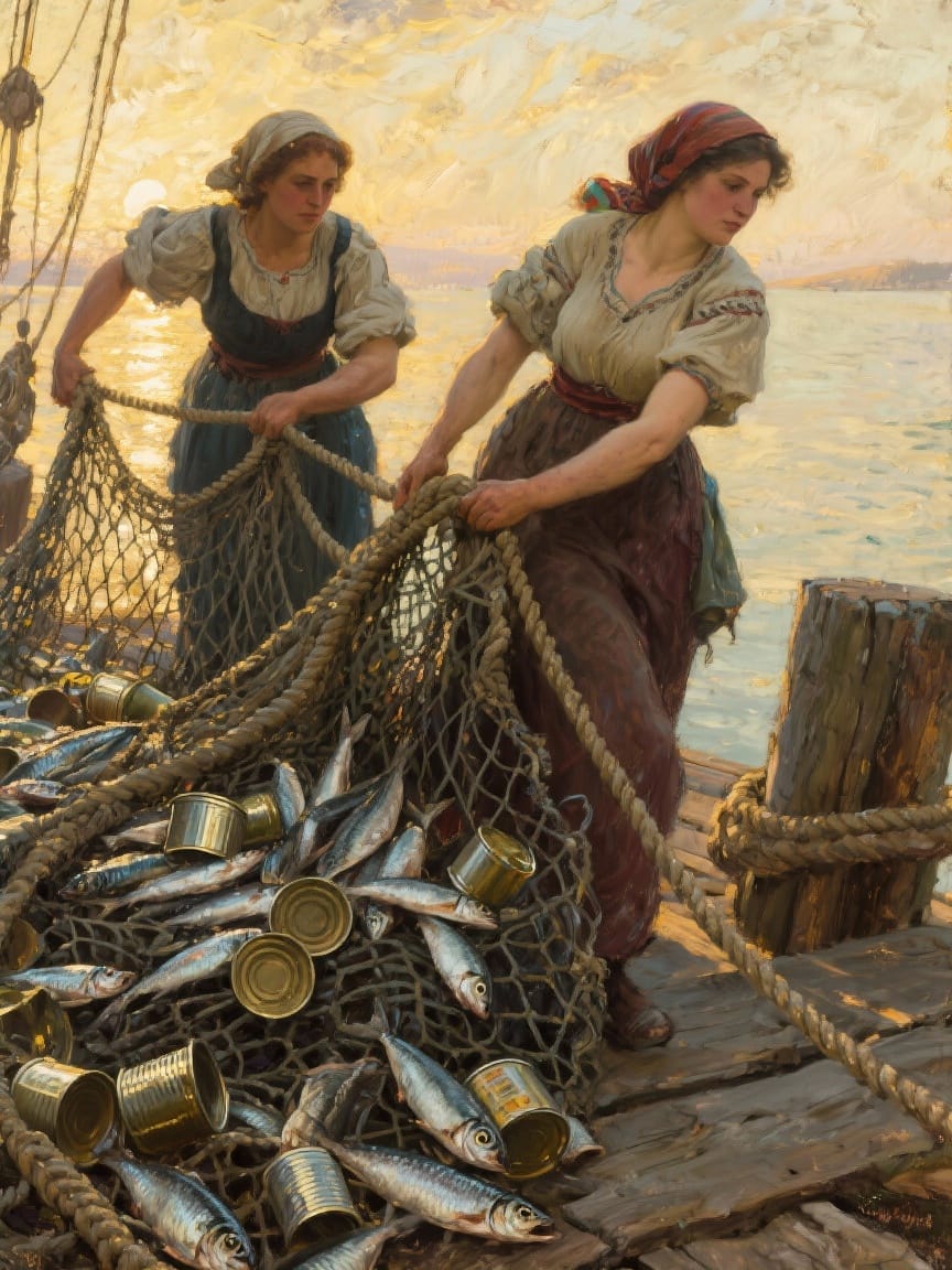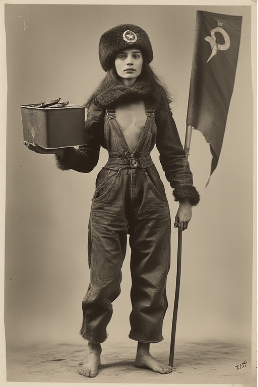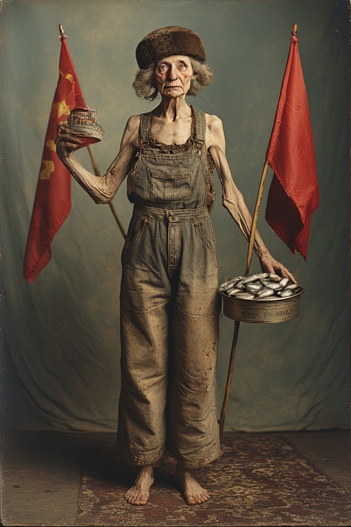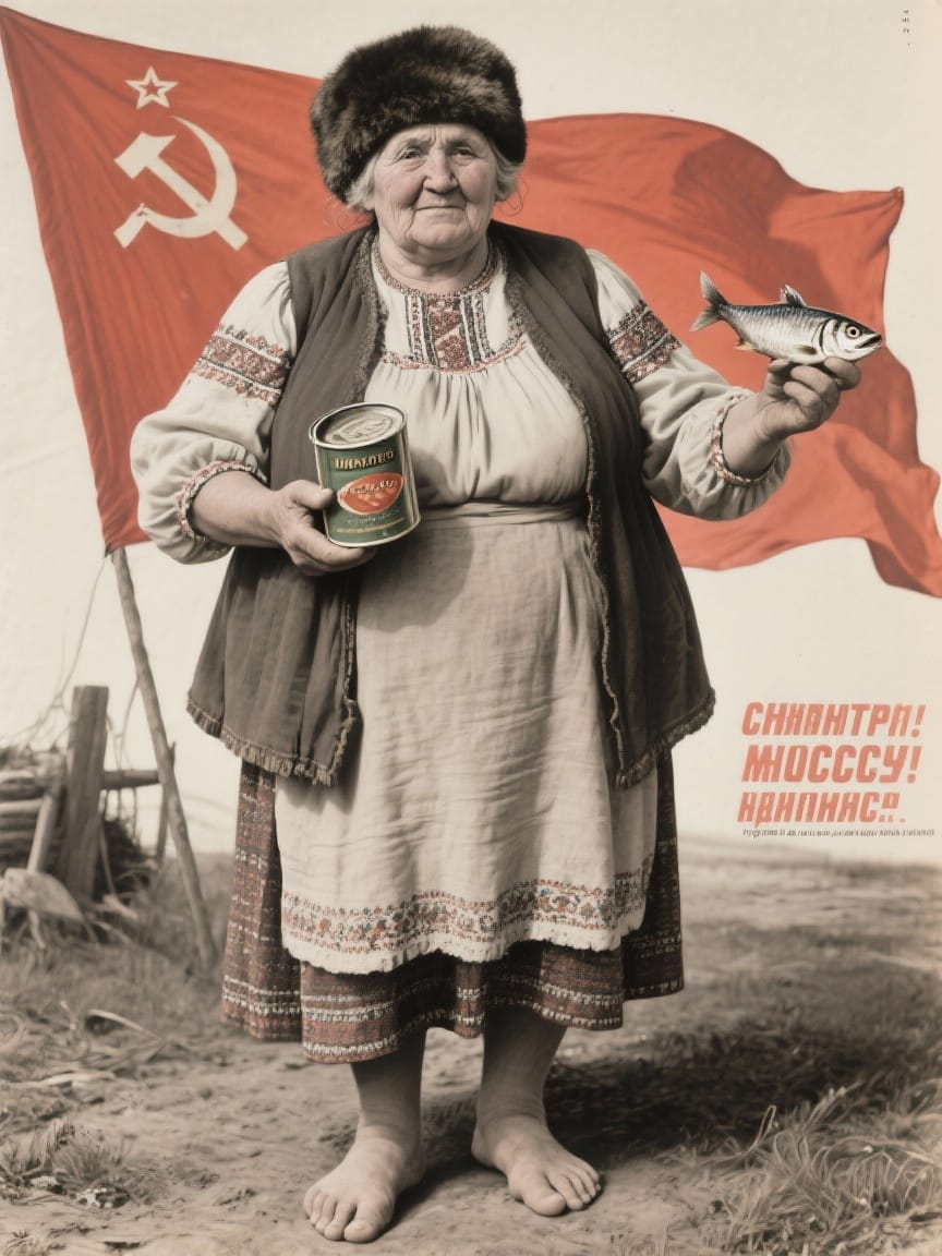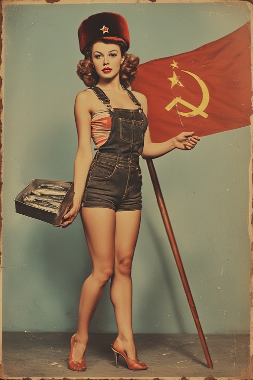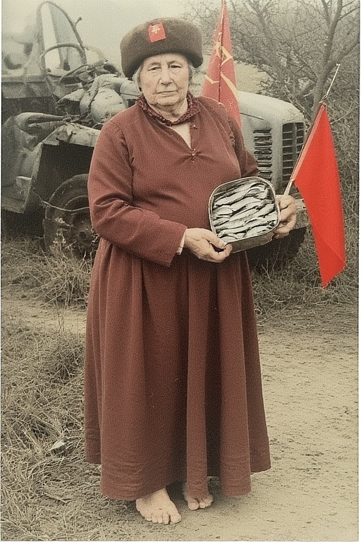 However, lower-level bureaucrats misunderstood the directive, and thought the party leaders expected to pull canned fish from the sea, directly into their nets. Impossible, of course, but you don’t tell the politburo that. So these mid-level toadies created a series of photos and art work to convince Moscow that they were following orders.