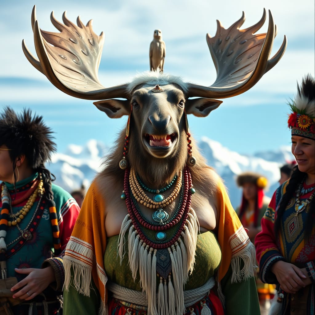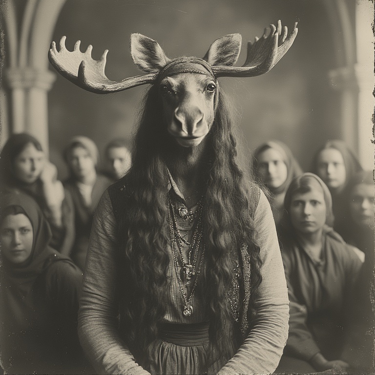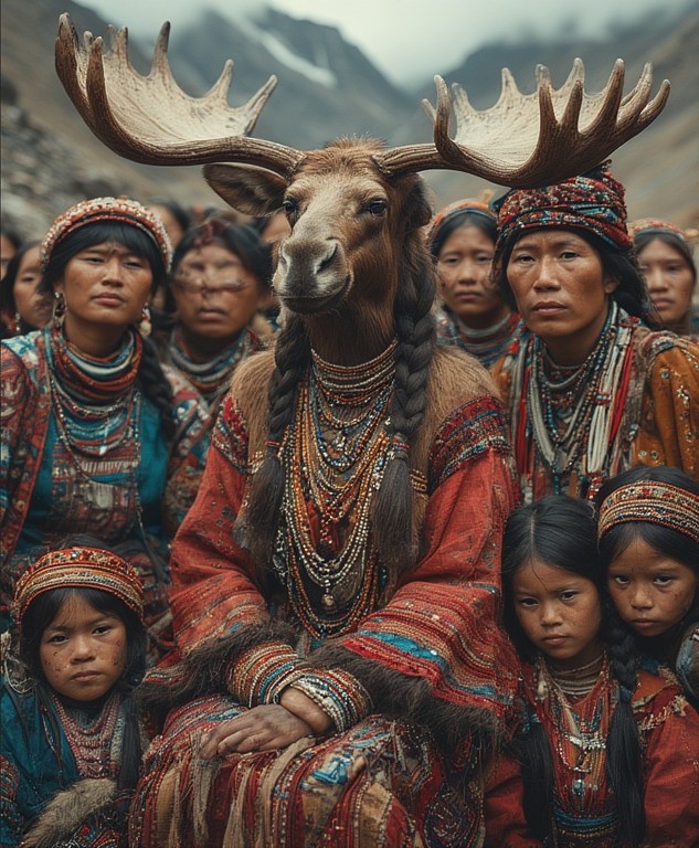 Our photographic team assembled images of our woman-moose-priestess from all corners of the globe.
