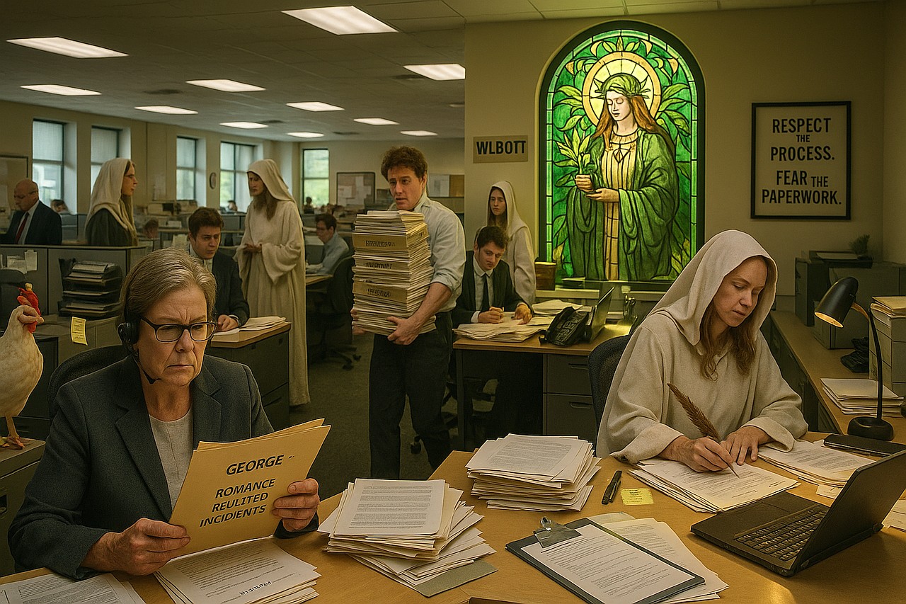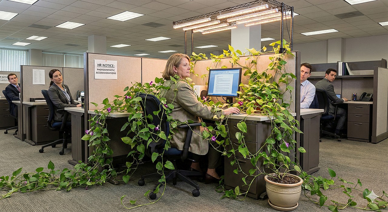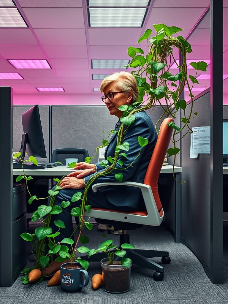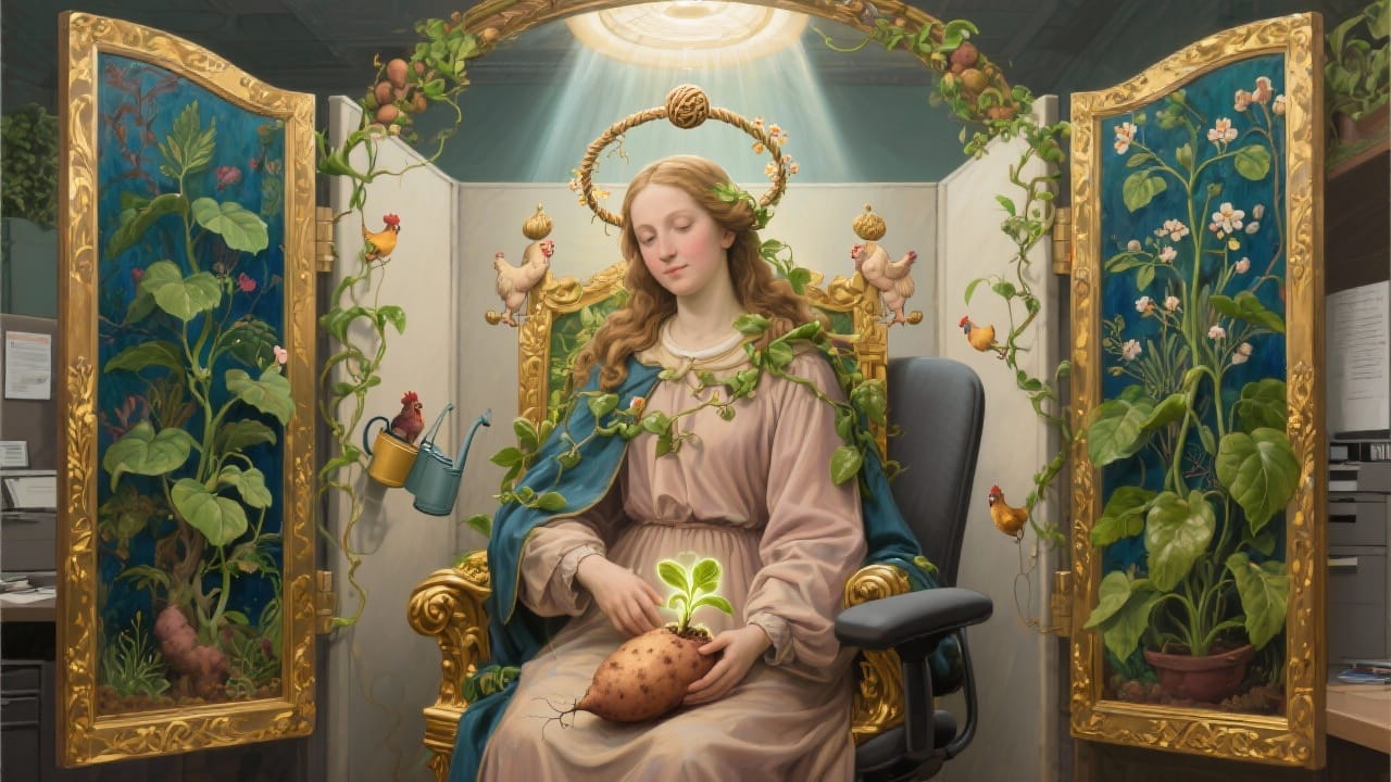 Due to the spiritual emptiness of most corporate cube farms, many veggie workers (or veggie-persons, as they came to be known) longed for deeper meaning.