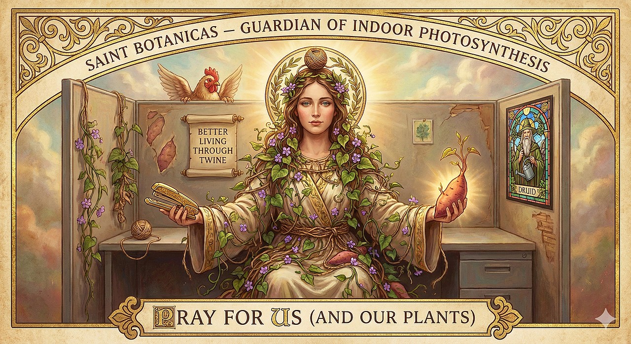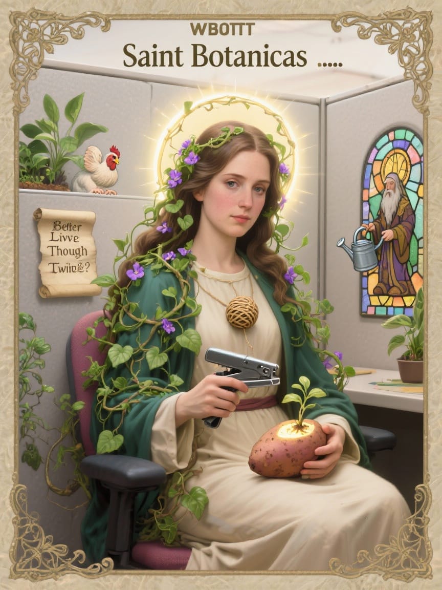 Sister Bonaticas, now officially the WLBOTT patroness of Veggie-persons and office plants, is venerated in many ways.