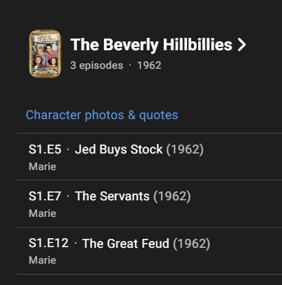Television career Her best known role was as Mrs. Drysdale’s maid Marie, in three 1962 episodes of The Beverly Hillbillies. – Wikipedia