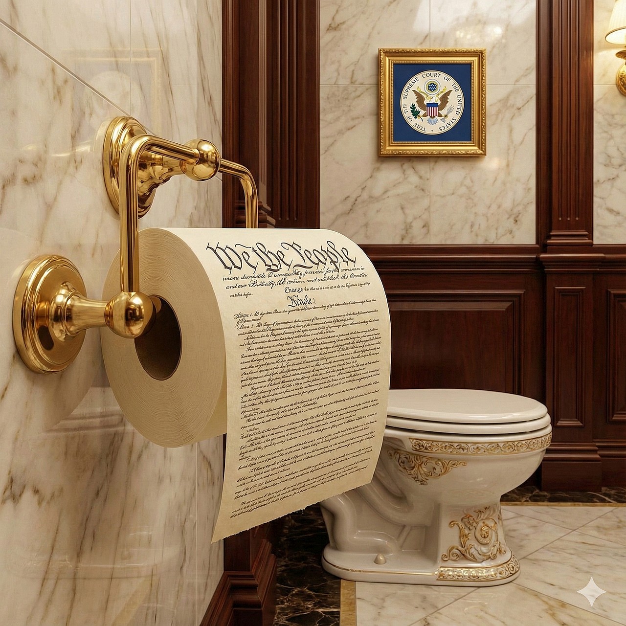 Upon returning to D.C., these six esteemed members of this august body granted access to the WLBOTT “News” department, so that our fashion and design editor could see the decorating employed in the individual rest rooms.