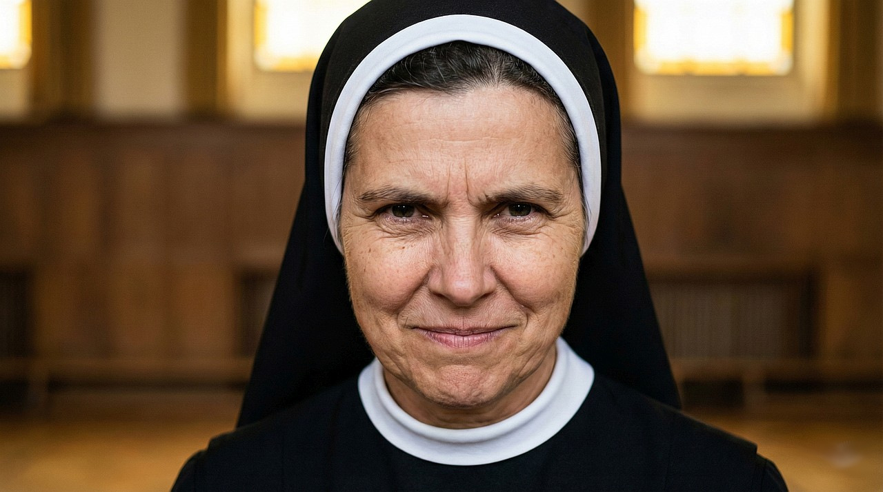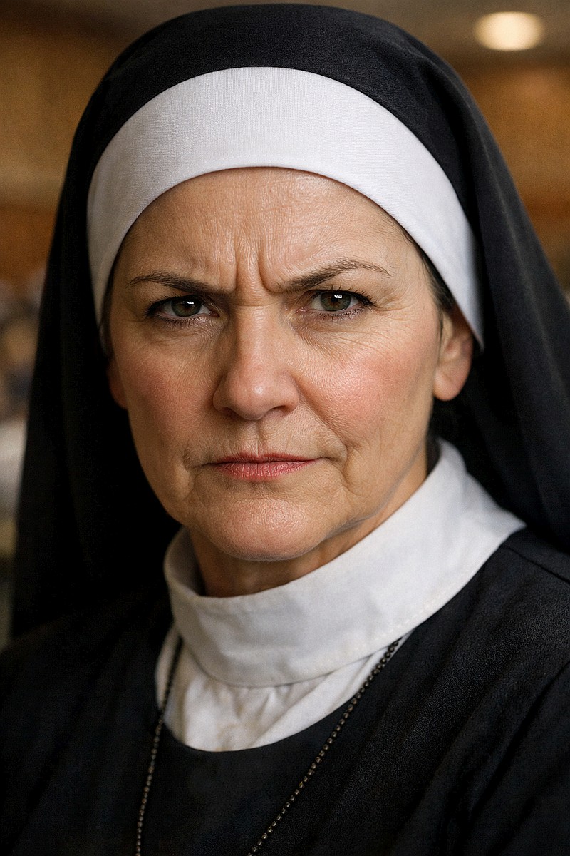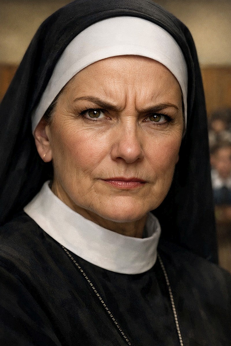 This left Sister M in a difficult position. “Must not laugh. Must be the mean-stern-nun.”