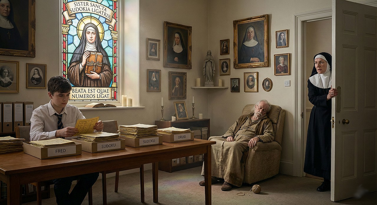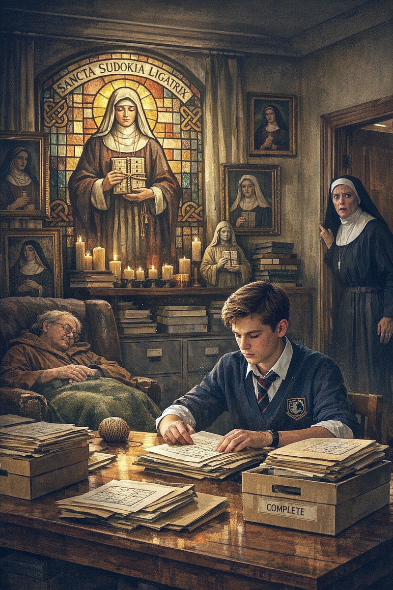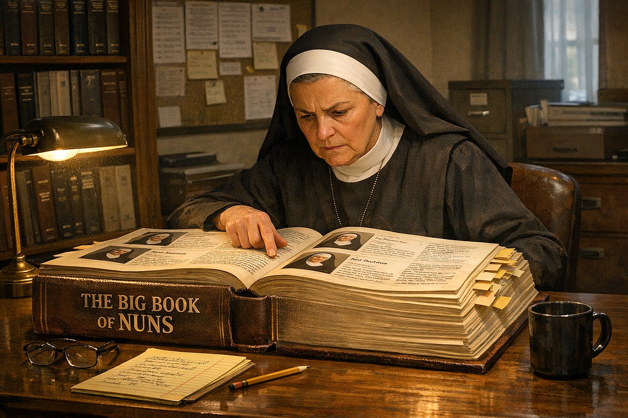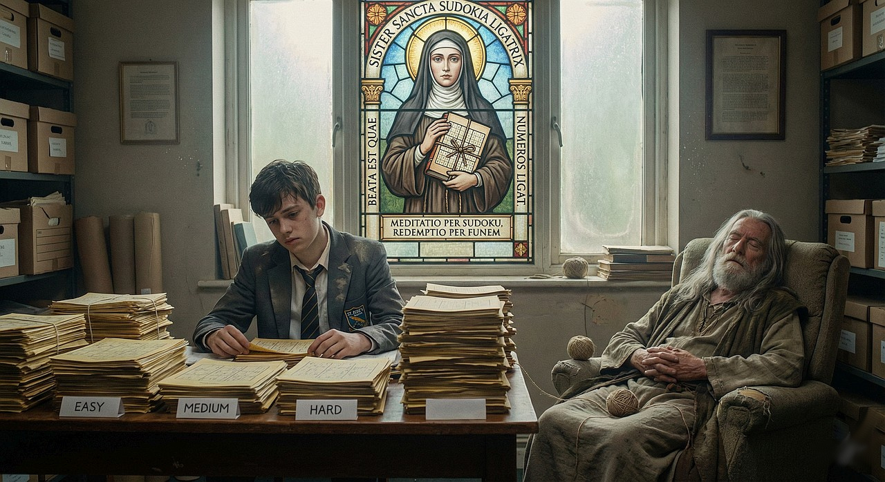 Back at her office in St. Gangulf Middle School, Sister M. checks her reference material to determine if she simply wasn’t aware of Sister Sancta Sudokia Ligatrix.