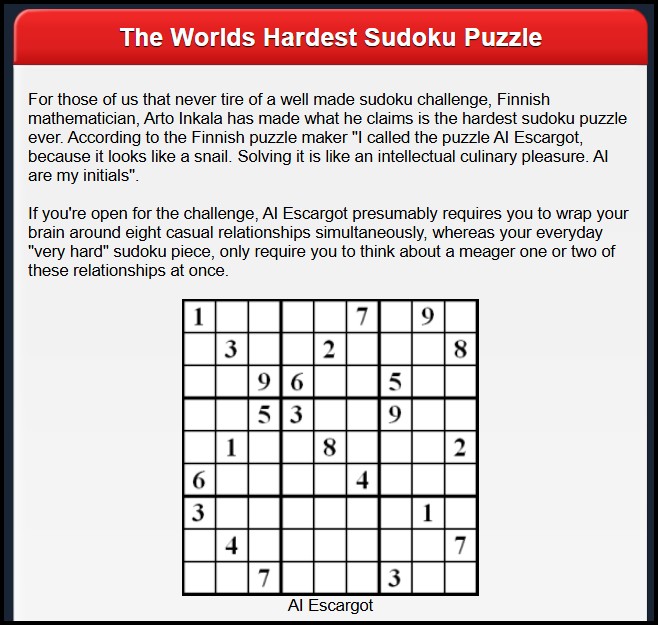 According to Kristanix, here is the world’s hardest sudoku: