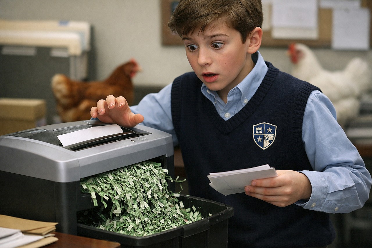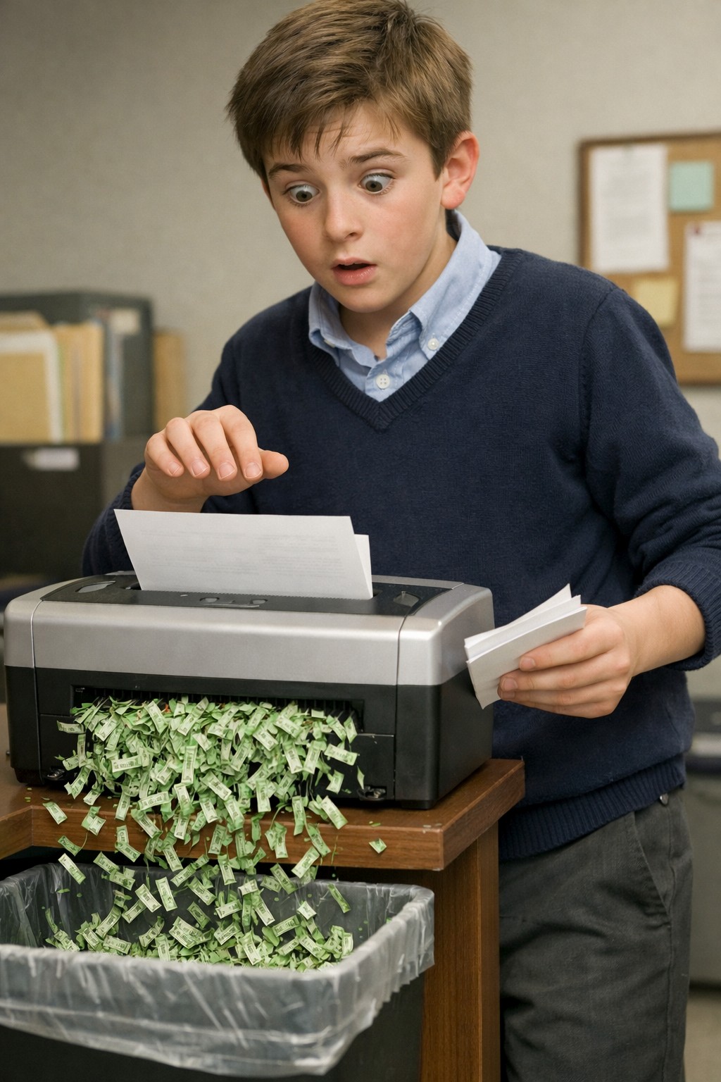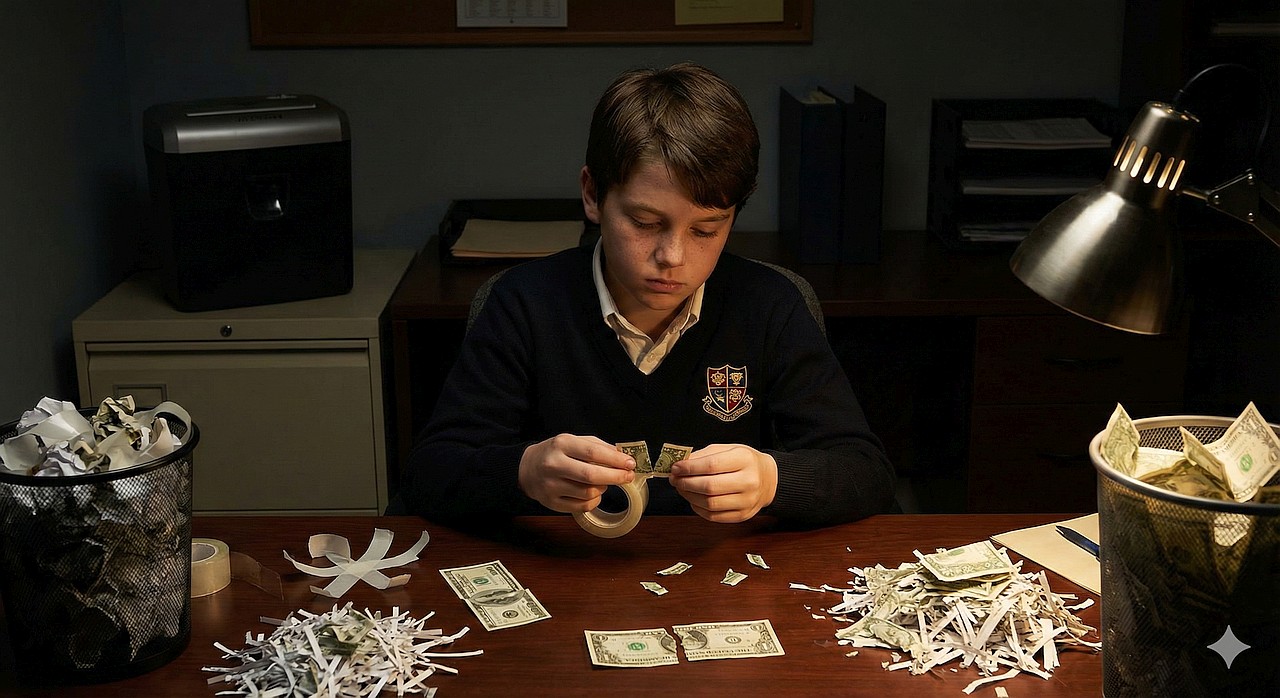 But Fred grew restless and his mind began to wander. He recalled a lecture from Sister Flugelhorn, the art teacher at St. Gangulf Middle School. She described the work of Vik Muniz, a Brazilian artist who repurposed trash and waste into art. And he did a series using shredded U.S. currency!