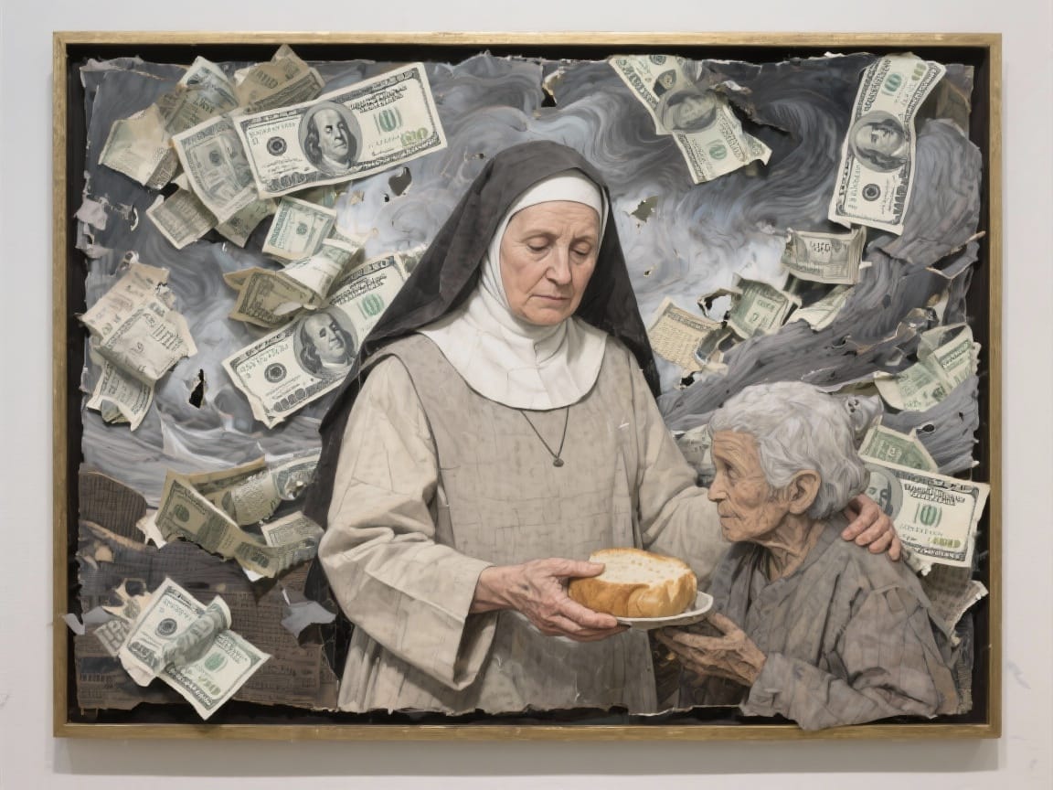 With the Elders’ tepid blessing, Fred begins. He wants to honor Sister Magdalena and her commitment to service in a world filled with greed. He also hopes she will like his art and commute his penance.