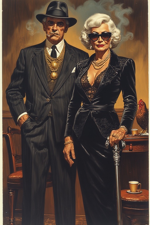 Robes with “stealth embroidery.” Sunglasses worn indoors at night. Gloves inappropriate for the climate. Crime-adjacent fashion is a victimless joy.