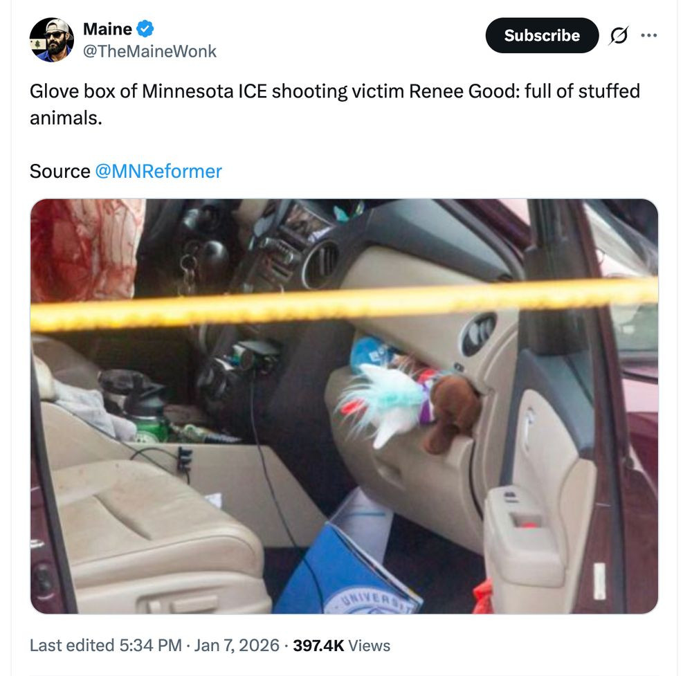 Renee Good was murdered by a cowardly ICE agent. Of this, there is no doubt. But images and a name are being circulated on the Internet. There is a possibility that these images are generated with AI. It is important that we do not dox the wrong person. In time, this coward will be named and held accountable. We must hate well.