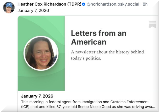 Heather Cox Richardson provides truth and clarity. I strongly encourage everyone to read her analysis.