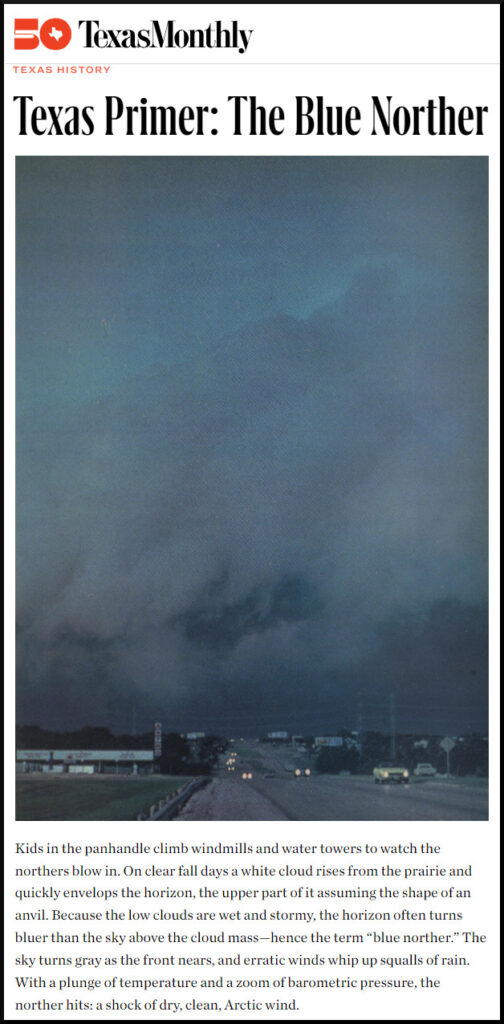 By mid-September we are yearning, on our tiptoes, for a hint of the first cold snap. – Texas Monthly
