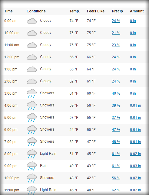 Tomorrow’s high will be 44°F (26°C) cooler than yesterday’s high.