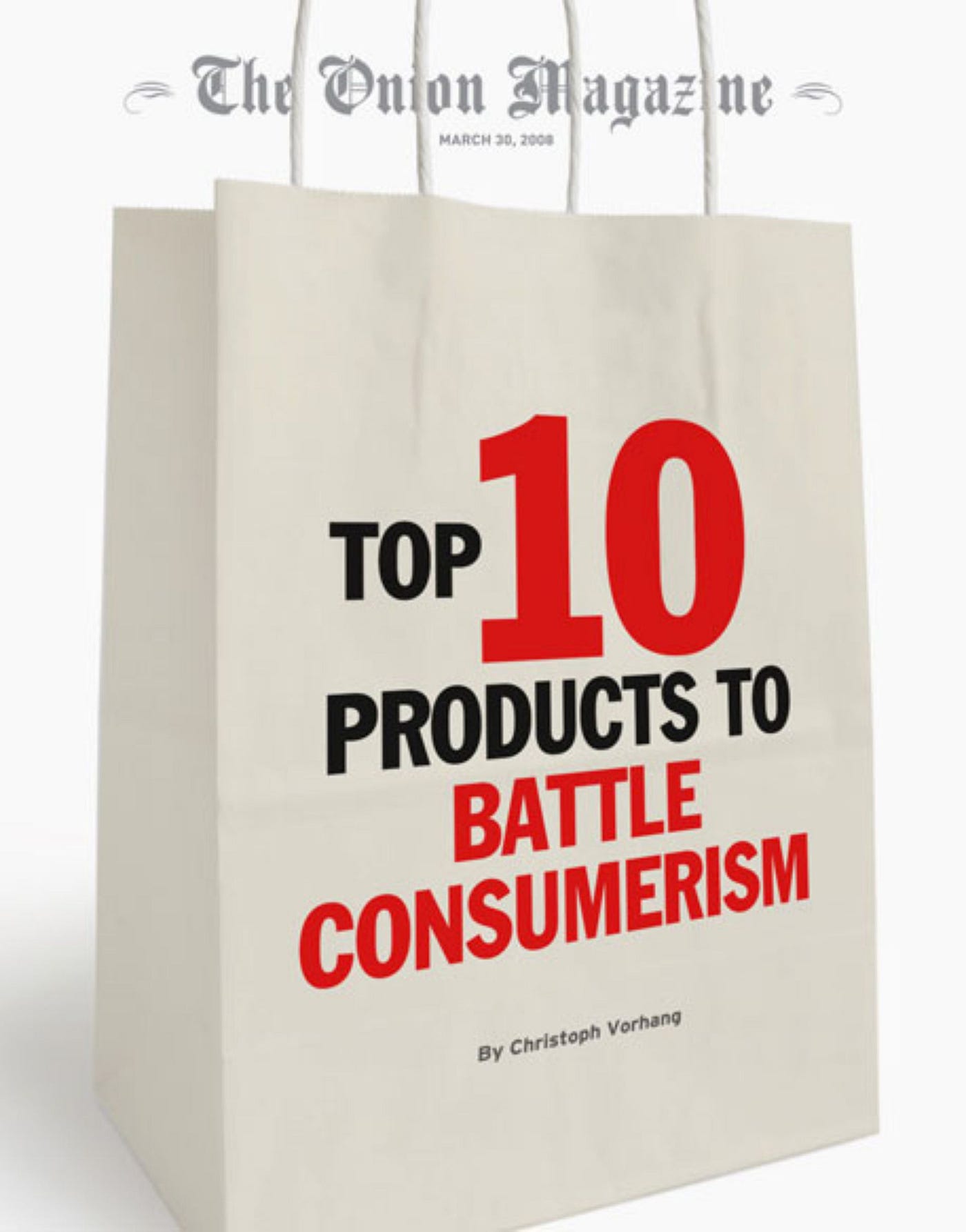 This reminds me of an Onion article: “Top 10 Products to Battle Consumerism.”