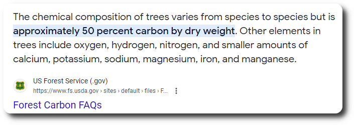 So that’s 150 * 1.759 = 263.85 tons of sequestered CO2 per acre. To match Heirloom Carbon Technologies yield of 1,000 tons per year, we wound need 3.79 acres. For our republican friends, that is 2.87 football fields (with end zones). And, we don’t need to run a kiln at 1,650 degrees Fahrenheit round the clock to grow trees.