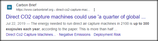 That is, the volume of air that would need to be processed is 2.3 quadrillion SCF/d or 23 x 1015 litres per year. Looked at another way, the present cost of capture and supply of CO2 is about $1200/ton.