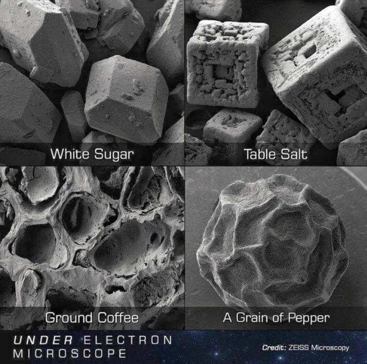 Sugar, salt, coffee, pepper