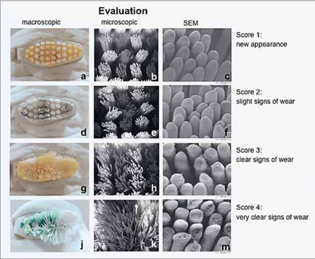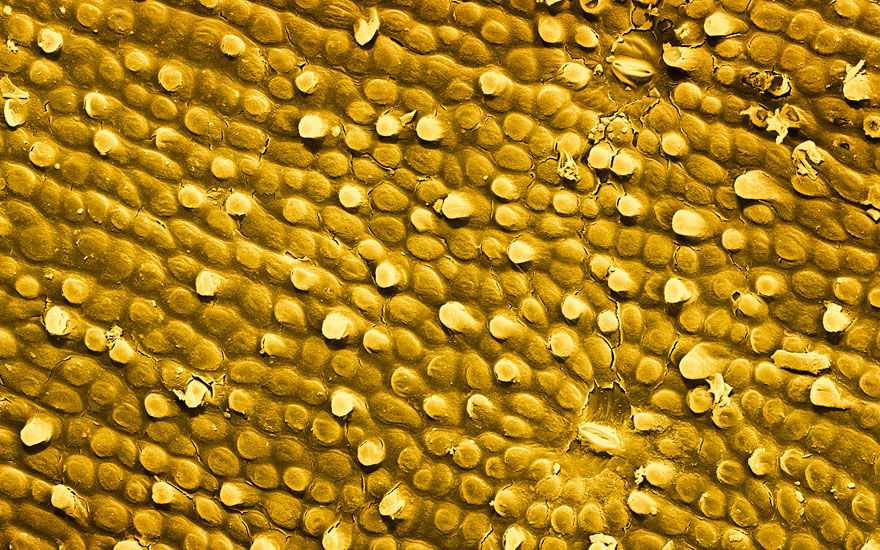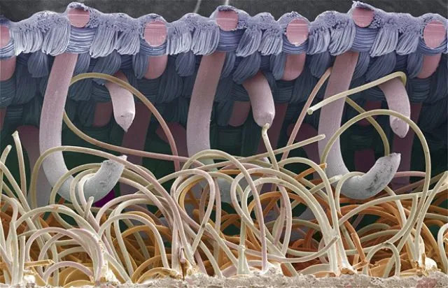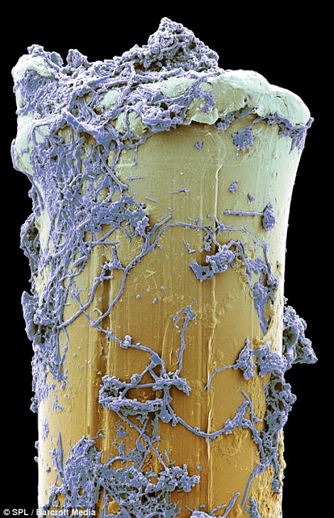 I wasn’t able to find an electron microscope picture of a miniature paint brush, but in true WLBOTT fashion, I found electron microscope pictures of tooth brush tips, used in a study of gingivitis. Incredible how uniform they are.