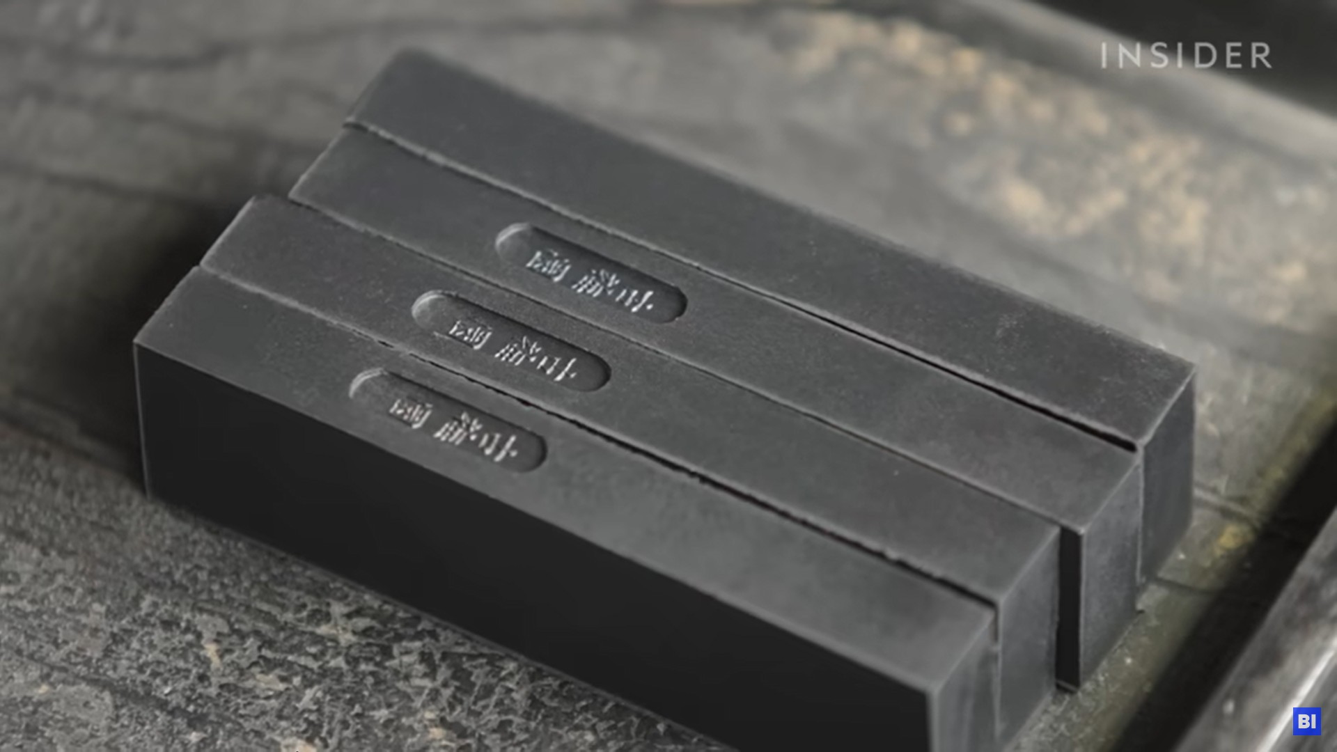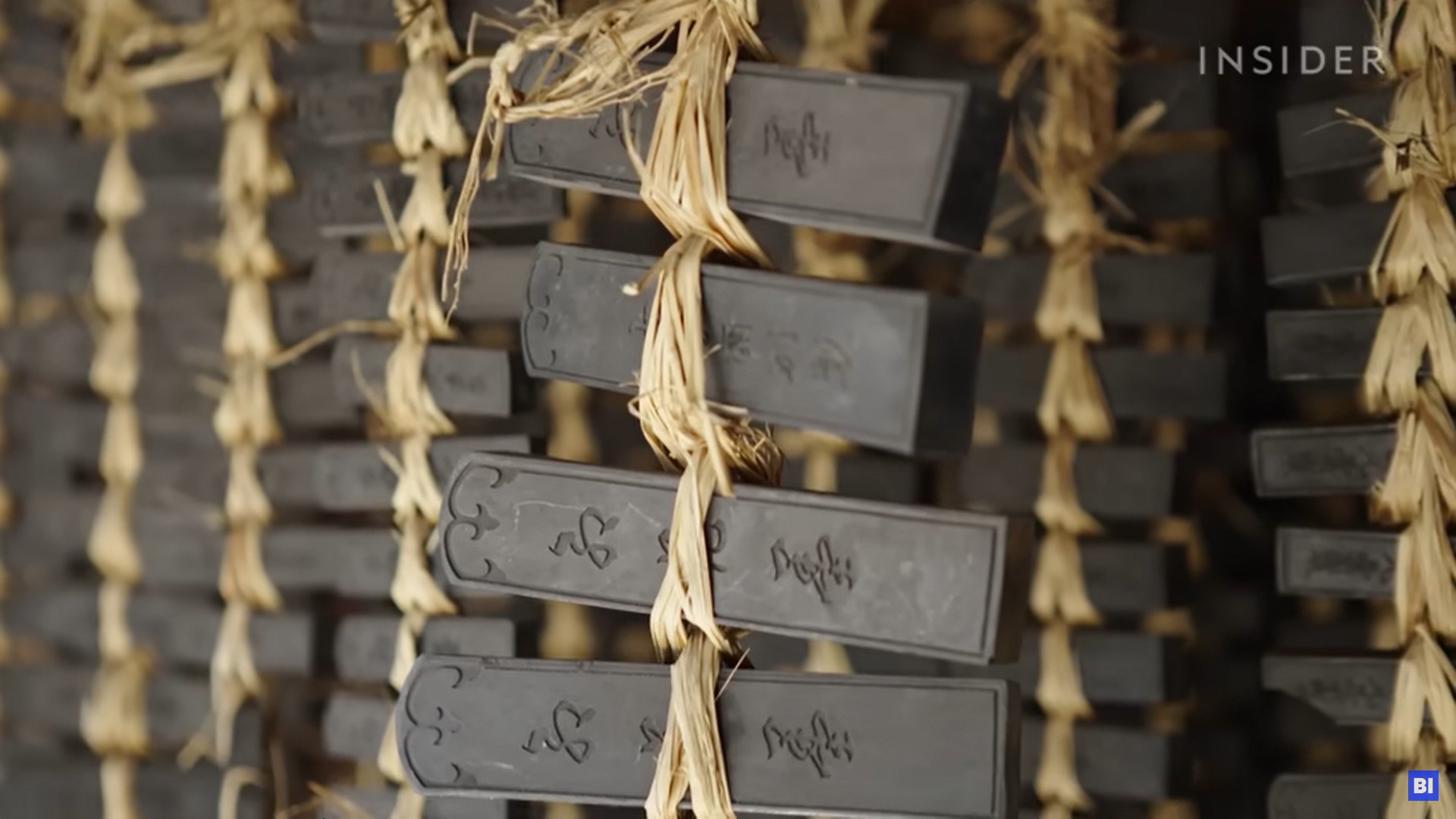 The ink sticks are cured using first oak ashes, then air-drying, in a process that takes four years.