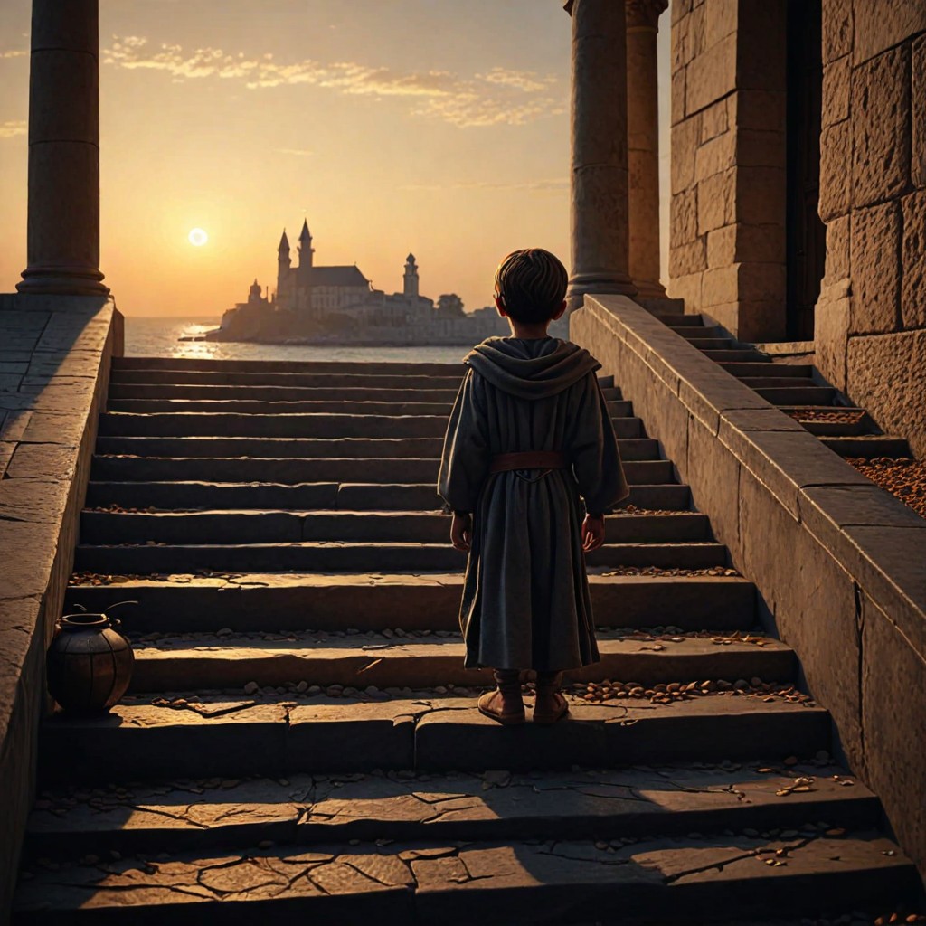 Then he descended the steps of the Temple and all the people followed him.