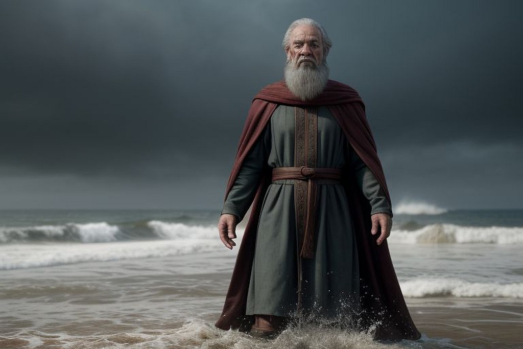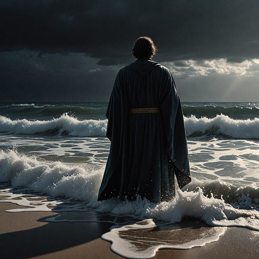 After saying these things he looked about him, and he saw the pilot of his ship standing by the helm and gazing now at the full sails and now at the distance.