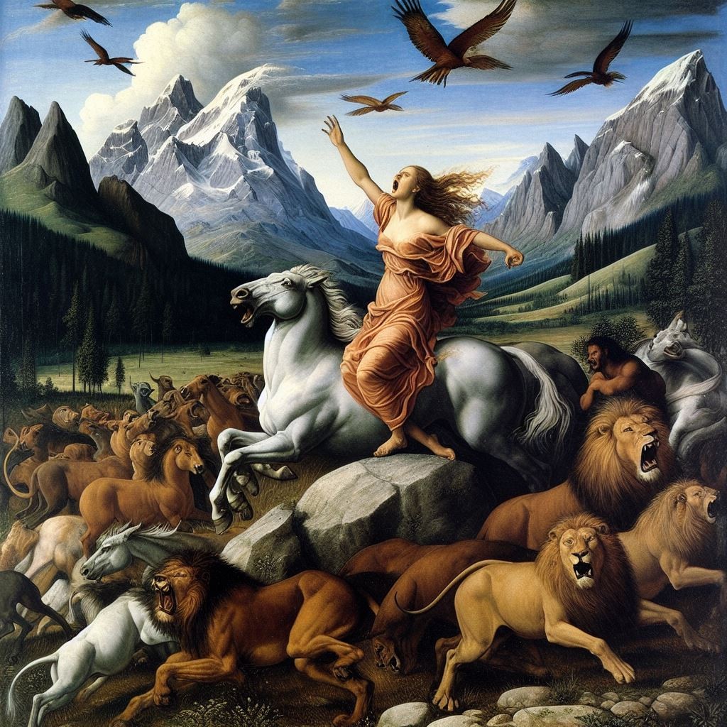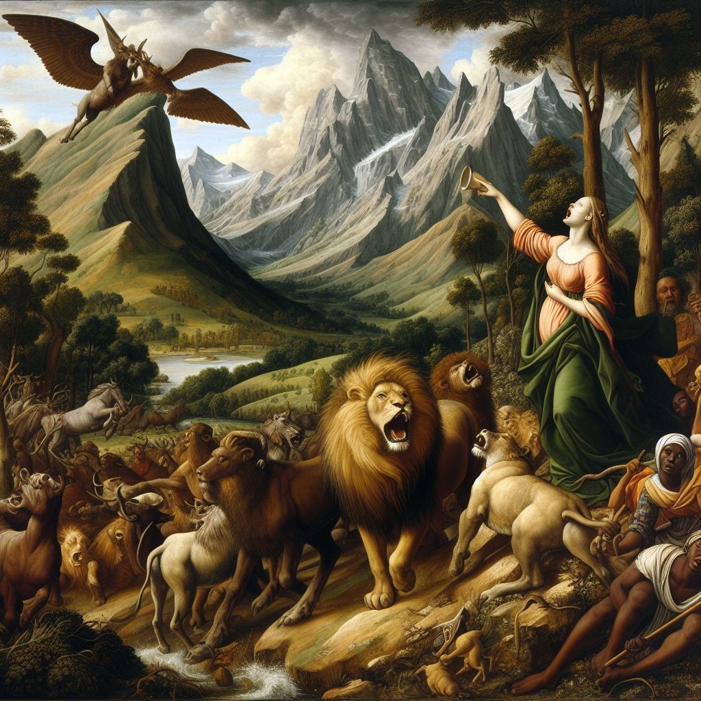 And with her cries came the sound of hoofs, and the beating of wings and the roaring of lions.”
